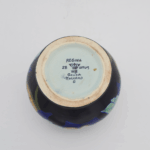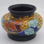 Leaf-inspired small-sized vase with powerful nuances of blue, yellow and brown, in Art Deco Matte style, model “lotus”. The piece was made between 1927 and 1935, according to the markings on the bottom. Regina factory was formed in 1898 and named after Queen Wilhelmina. Their creations rose to the standard of perfection and were the true premiums of those days. Both the original factory signature and style are visible on the bottom.